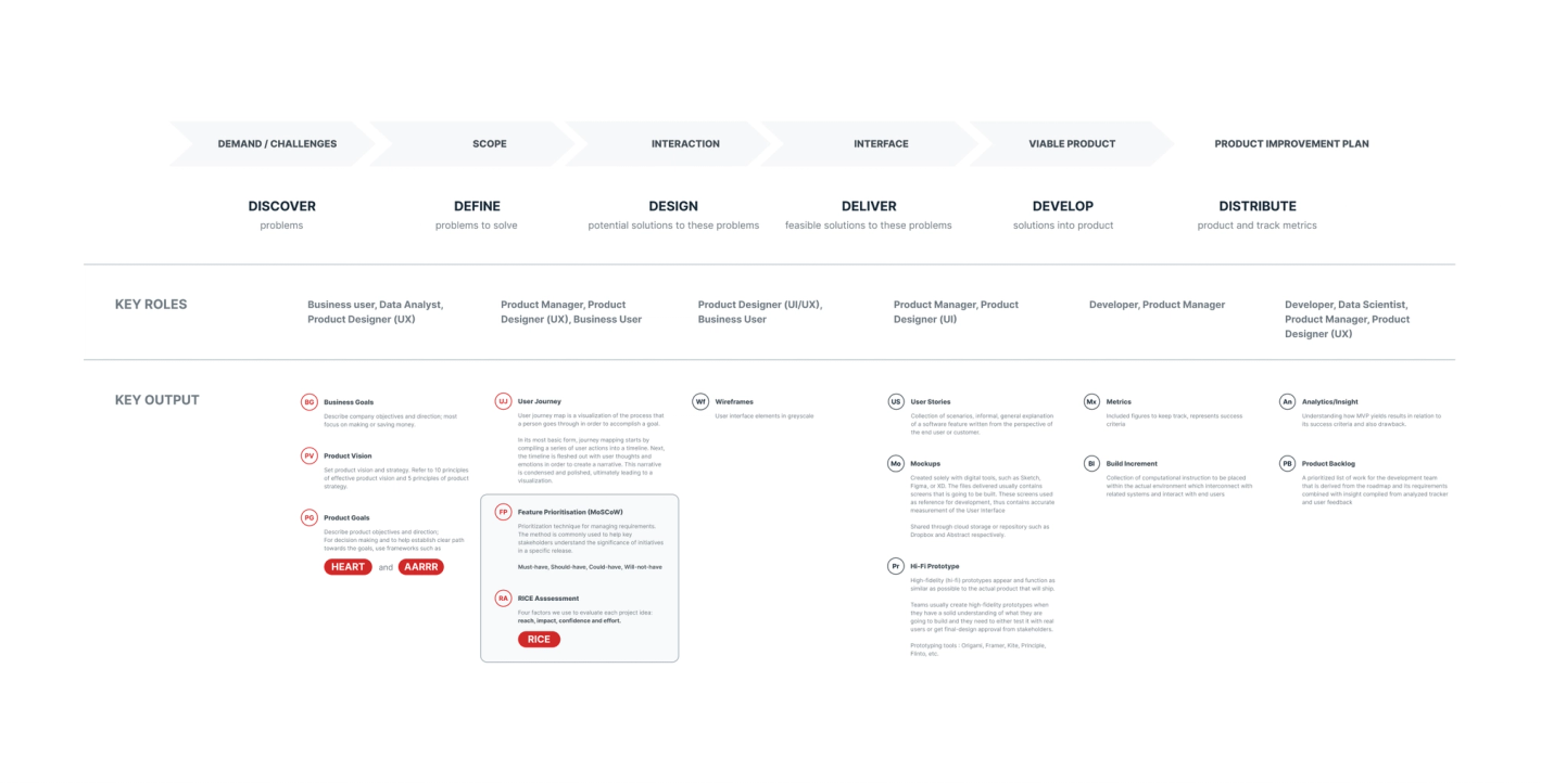 - Design-driven product development overview (Business / User / Technology pillars) Compiled by Fares Farhan, CC BY